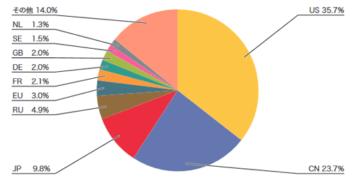 図-3 DDoS攻撃のbackscatter観測による攻撃先の国別分類