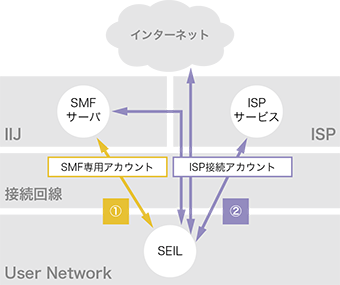 この接続先自動更新プロトコルはユーザの運用管理の手間を減らす一助となりました。しかしISPから一方的に情報を渡すだけではできることは限られています。ユーザが自由にネットワークを構成した上でそのネットワークの運用管理を手助けできるシステムを目指し、SMFの開発が始まりました。