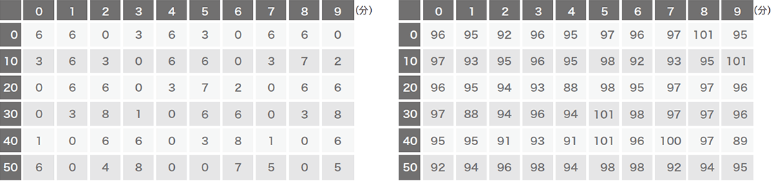 BOTやRATなどのマルウェアは、C2サーバに定常的にアクセスを行い、攻撃者からの命令を取得して実行するという特性があります(図-1)。多くの場合、ポーリング間隔は数十秒から数分程度です。この間隔が長いほど、一命令あたりの待ち時間が長くなるため、攻撃者は活動しづらくなります。反対に、間隔が短ければ攻撃者は活動しやすくなりますが、単純に宛先ホスト別に通信回数を分析するだけで上位に来るため、防御側が発見しやすくなります(※3)。つまり、攻撃者にとって通信頻度の調整は重要かつ変更しづらい特徴であると言えます。一方で、組織内の一般ユーザがWebアクセスなど外部と通信を行う場合、頻繁に、かつ長時間アクセスすることは稀です。図-2は、1時間あたりにユーザが無害なWebサーバにアクセスした場合のイメージ図(左)とマルウェアがC2サーバと定期的に通信を行った場合のイメージ図(右)です。ほとんどの場合、このように通信パターンに違いが出るため、このパターンの違いを学習できればマルウェアの通信を検出できると考えました。この方法はDNS名、IPアドレスやURLなどに依存していないので、既存の検知手法で見逃しても本手法で検知することができます。