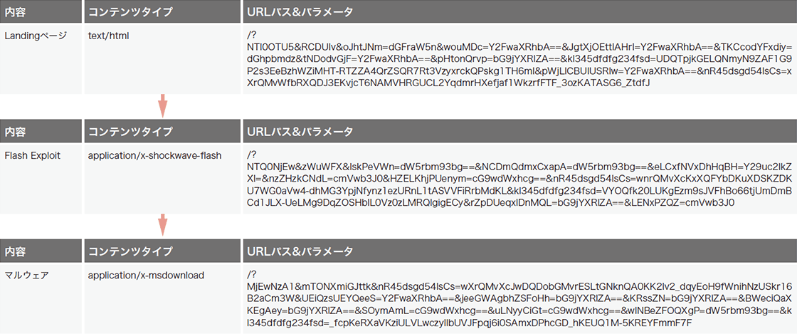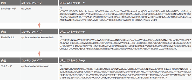 図-10 Exploit Kitサーバから送信されるコンテンツタイプの遷移