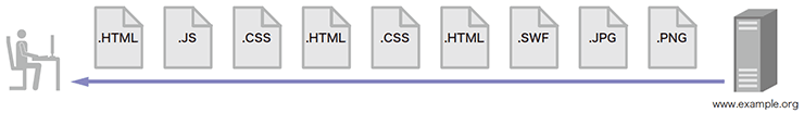 一方、通常のWeb閲覧時は、任意のWebサーバから送信されるコンテンツタイプがこのように遷移するケースはほとんど考えられません。例えば、大規模なWebサービスなどではコンテンツタイプに応じてサーバが用意されることが多いため、図-13のようにExploitとして悪用されるFlashやJavaなどのコンテンツと、LandingページのようなHTMLコンテンツは異なるサーバから送信される傾向にあります。また、単一サーバで全コンテンツをホストしている場合は、図-14のように近年のExploit kitではあまり用いられない画像やCSSなどが同じサーバから送信されることになります。