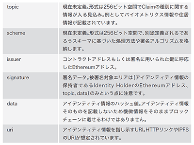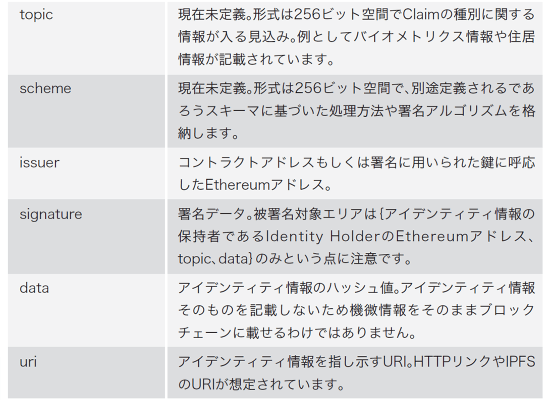 表-1 ERC-735 Claimの各構成要素