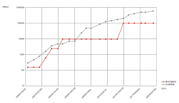 2018年のこの記事で、IIJのバックボーンの総トラフィックが10年で10倍以上になっていることを紹介しました。今回はIIJのバックボーンの歴史、特に回線品目について振り返ってみたいと思います。