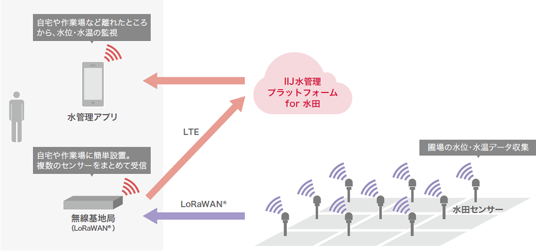 そのような状況の中、IIJも日本の農業を少しでも楽にし、収益を上げられるようにするために我々の力を生かせないかと考えています。IIJが注目している最新の無線通信技術「LoRaWAN®」を採用した水田センサーを開発するなど、実績を積んできました。