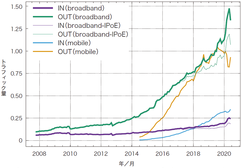 今年は、本来ならばオリンピック・パラリンピックの開催に伴ったネットサービスの展開による利用動向の変化を予想していたのですが、新型コロナウイルス感染拡大の影響で予想もしなかった形でインターネット利用状況に変化が起こりました。6月以降トラフィック量的には少し落ち着いてきてはいますが、リモートワークやビデオ会議の利用などは定着してきていて、元のレベルに戻ることはないでしょう。現時点ではまだまだ先が見えない状況が続いているので、引き続き状況を注視していきたいと思います。