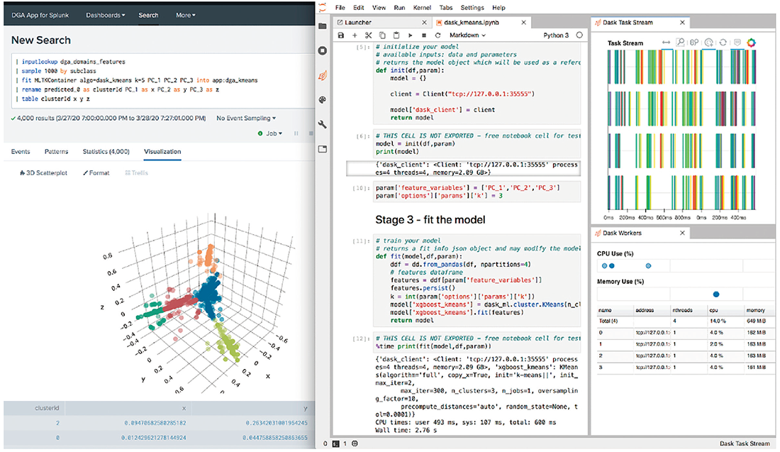 Splunk Deep Learning ToolkitのNLPはDockerコンテナで稼働しているJupyterと連携して動作しており、アルゴリズムはPython Natural Language Processing library であるspaCyを用いて実装されています。
