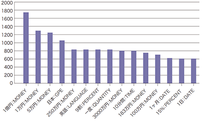 テキストデータ分析が難しい背景に、分類情報がなく解析軸が定まらないという点がありますが、このように固有表現抽出を用いることにより、テキストデータを固有表現の属性を使って分類可能になるので非常に大きな意義があります。