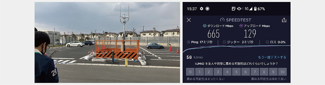 図-4 白井ワイヤレスキャンパスのローカル5G基地局と端末スピードテスト