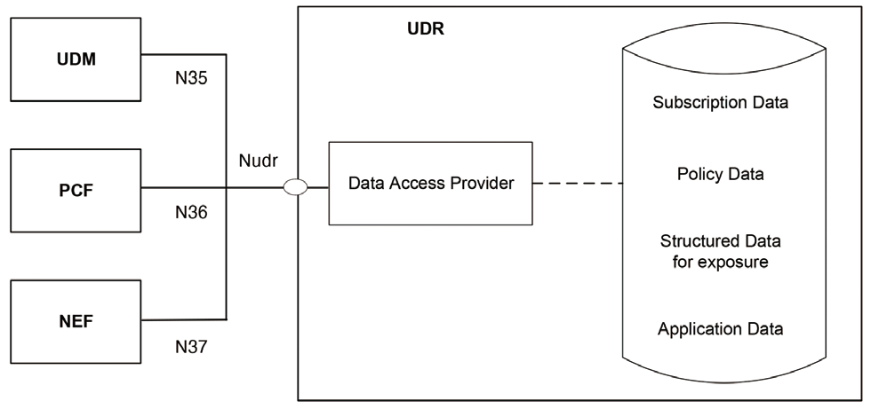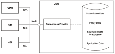 NSAはUDR/MME/S-GW/P-GWそれぞれの装置に加入者プロファイルデータを分散して管理していたため、加入者プロファイルの問い合わせ先が分散されて、処理が煩雑でした。そこで、3GPP TS23.501 4.2.5 Data Storage architecturesで、これまで分散されていたデータをUDR(Unified Data Repository)/UDSF(Unstructured Data Storage Function)に一元管理するNudr IFの規定が新たに設けられました(図-6参照)。これにより、クラウド上でのデータ一元管理が可能となり、加入者プロファイルの問い合わせ窓口はUDF/UDSFに統一化され、処理が効率化できました。