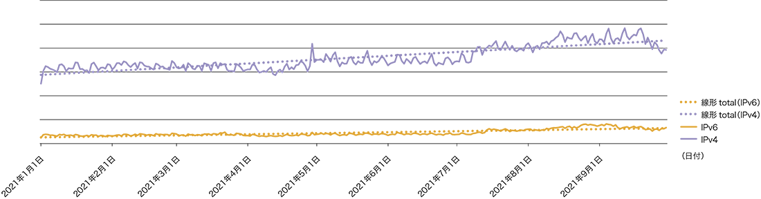 2020年はCOVID-19による影響と思われる伸びの鈍化がありましたが、今回の計測結果を見ると、年々順調にIPv6の利用が増加していることは確かです。