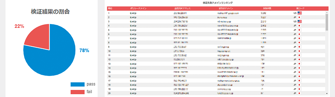 (左)検証結果の割合(右)検証失敗ドメインランキング上位20ドメイン