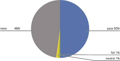 前回、本レポートのVol.51(https://www.iij.ad.jp/dev/report/iir/051/01.html)で報告した集計結果と比較すると、DKIMとDMARCのpass割合が増えていることが分かります。DKIMのpass割合が前回と比較して数ポイント増加していることから、リモートワークの状況下にて各企業でのSaaS導入がやや増加傾向にあるのではないかという予測ができます。また、DMARCのpass割合も増加していることから、徐々にではありますが、送信ドメイン認証への世間への関心が高まっている様子が窺えました。