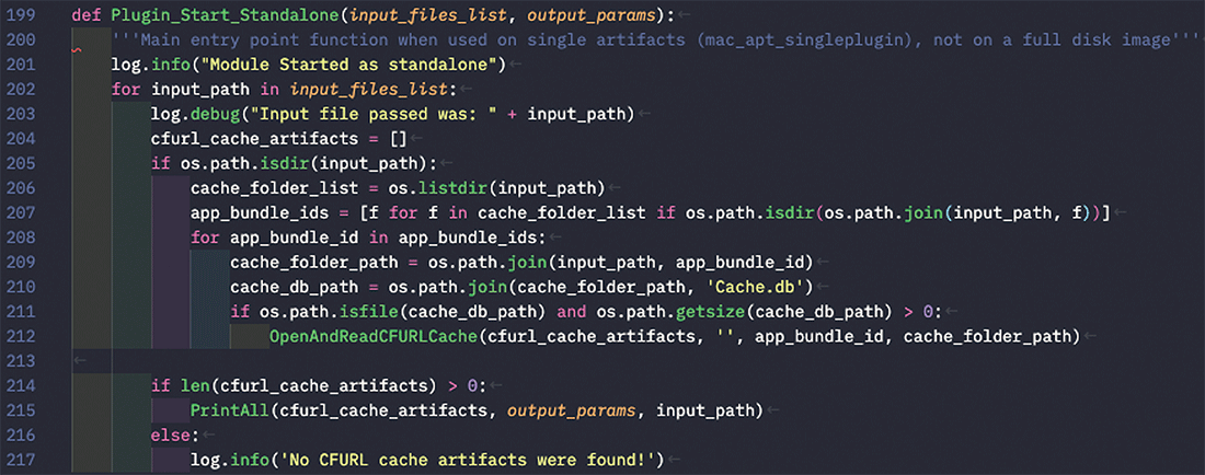 Plugin_Start()はmac_apt.pyを実行した場合のプラグインのエントリーポイントです(図-8)。