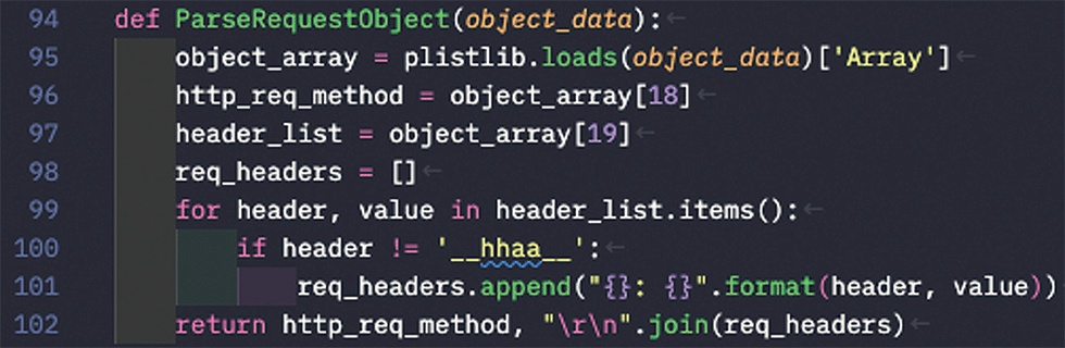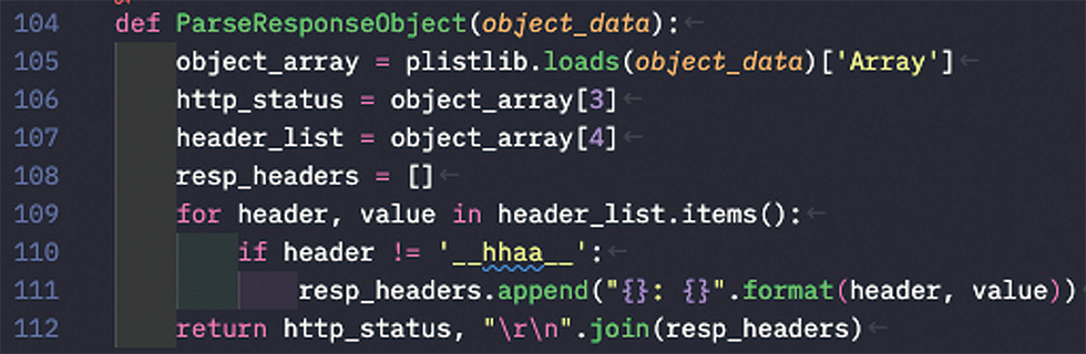 response_objectとrequest_objectに保存されているplistデータは、Pythonのplistlibモジュールを使ってパースすることができます(注4)。__hhaa__はパース結果から除外します。