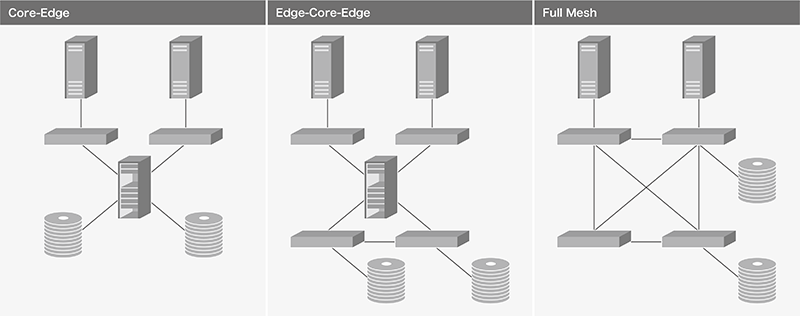 Edge-Core-Edgeは、データセンターの複数フロアにストレージ及びサーバが分かれて設置されている場合に採用しています。例えば、Coreの近くにストレージが設置できない状況において、ストレージ用Edgeスイッチを配置してCoreと接続する必要があるといった理由によります。また、大規模になるとEdge-Core-Core-EdgeというCoreを別々のフロアに設置する構成もありますが、その場合Core間のトラフィックが多くなると見込めますので、ISL Trunkの本数を予め多めに設計するよう心がけています。