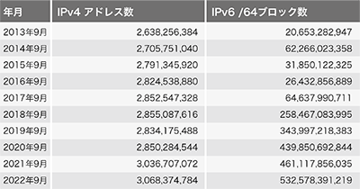 5年前からのIPv6比率の推移を表-5にまとめます。