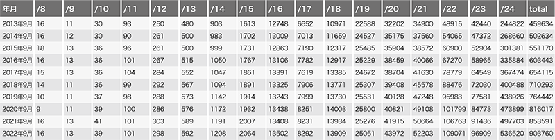 表-3「IPv4フルルート」に含まれる unique IPv4アドレス総数及び