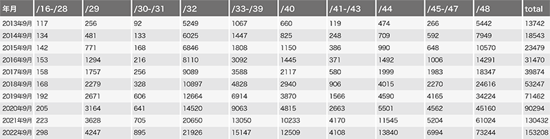 ここ数年間、モバイルのトラフィック傾向はコロナ禍の影響を受けた状況となっていました。その中でもここ1年間のトラフィック状況をまとめてみます。対象期間は2021年10月1日から2022年9月30日です。