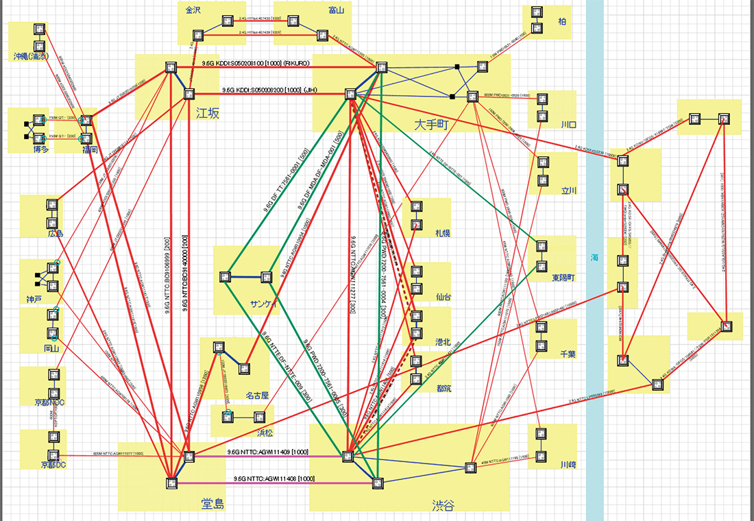 図-2 2013年頃のIPバックボーンマップ(BF構成を作成していた頃)