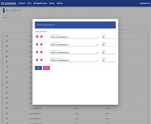 VXが柔軟で広帯域を提供できるNFV基盤となるためには、ネットワークの拡大・拡張がしやすいということも必要な要素として挙げられます。広帯域化の要素はCisco Nexusの高密度広帯域のポート構成を最大限に利用しています。もともとのMATRIXもキャリア向けの高性能ルータを使ってネットワークを構築していましたが、高性能ルータはどうしてもポート密度が少なかったり、ポート単価が高くなったりと有意義なポート増強を妨げる側面もありました。その点Nexusはレイヤー3スイッチであり、インターネットフルルートを前提としないIPファブリックを構成することに特化したネットワーク機器です。ネットワークの利用用途を絞ったことにより今までのIIJバックボーンルータで採用してきたキャリア向け高性能ルータとは求められる要件が異なり、より安価に広帯域な通信容量を確保することに一役買っています。上記のように機能を絞ったことにより、ネットワーク拡張によるイニシャルコストをある程度削減することに成功しています。そして、VXへの接続を容易にするためにスケールされたネットワークとしてVXとの接続ポイントを拡大することが必要です。ネットワークをより広げやすくしたことでIIJにおいてもサービス設備の展開がしやすくなり、多くのお客様がVXへ接続しやすくなるでしょう。ネットワークの拡大は柔軟なNFV基盤としては昨今MEC(Multi-access Edge Computing)に代表されるようにユーザにより近い箇所でトラフィックを交換するという考え方にも合っていると思います。MECを実現するためにもルータやスイッチ、ファイアウォールなどの機能がよりユーザに近い箇所に必要となりますが、VXとNFV基盤をセットでお客様に近い場所にIIJがサービス展開することで実現可能となります。物理的な拡張だけではなく、NFV基盤として各サービス設備の論理的な収容もしやすくなっています。VXを基盤として利用する各サービス設備をテナントという形で論理的に分けてサービス提供を行います。ネットワーク的な分離だけでなくサービス設備ごとに操作できる範囲を限定することで複数のサービスを仮想的に収容することができます。そのため1つのテナントでの影響を他のサービスに波及させることもありませんし、VXの利用者からみれば自身のサービス設備に関することをVXで意識するだけで良くなります。前項で述べたAPIの制御も保有テナントに限定されるため想定外の接続先に接続されるようなリスクもありませんので、VXの提供者としてもコントロールを渡しやすくなります。