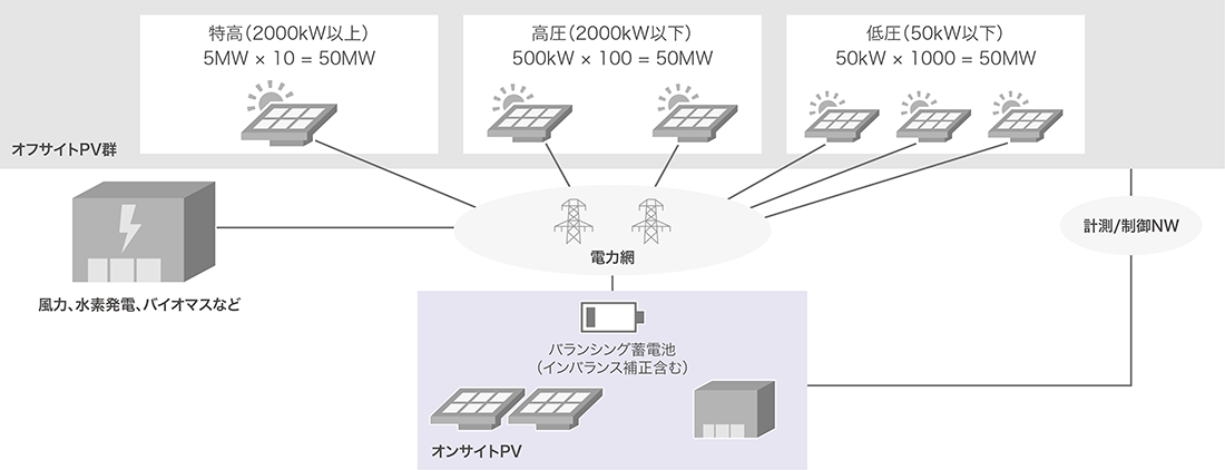 図-11のように、松江DCP・白井DCCともにオンサイト型の太陽光発電設備を2022年度中に稼働させる予定ですが、オンサイト型の発電設備から得られる電力はDC 全体に対し小さい(数%程度)といった課題があります。再生可能エネルギーの発電コストは年々下がっていることもあり、オフサイト型のコーポレートPPAや、発電所を保有する自己託送を次のステップとして検討していきます。