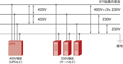 IIJは島根県松江市と千葉県白井市の2ヵ所に自社データセンターを運営しており、そこでは省エネ技術を導入し効率的な運用を実現しています。データセンターでIT機器に次いで多くの電力を消費する空調設備に外気冷却方式を採用し(図-5)、またIT機器に給電する電圧を230Vに統一することにより、UPS(停電対策用蓄電池)の400V出力電圧を損失のない無変換でサーバに給電できる3相4線式を採用すること(図-6)などにより、PUE1.2を実現しています。