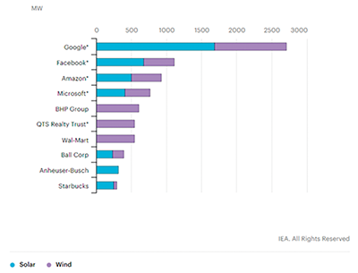 特にIT業界はグローバルでは最も再エネ導入が進んでいる業界です。図-10は、再生可能エネルギーを発電事業者から直接購入するPPA(Power Purchase Agreement)に基づく電力調達量のトップ10を示していますが、10社のうち5社(Google、Facebook、Amazon、Microsoft、QTS)がデータセンターオペレーターです。再エネの利用は、IR的な効果はもちろんありますが、グローバルでは風力や太陽光による再エネの発電コストが従来型の化石燃料による発電コストよりさがっているため、大量の電力を定常的に消費し続けるデータセンターオペレーターにとっては、再エネへのシフトも経済合理性のもとに進められているのです。