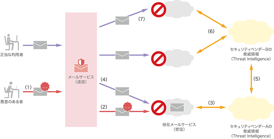 このような状況を放置すると、攻撃対象となったユーザへの被害のみならず、メールサービスでも次のような悪影響が発生します。