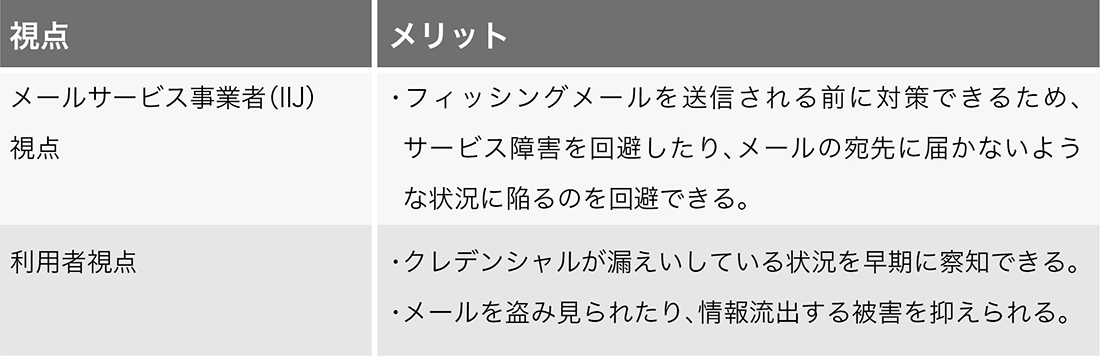 フィッシングメールが送信される前に対策できれば、表-1のようなメリットがあります。