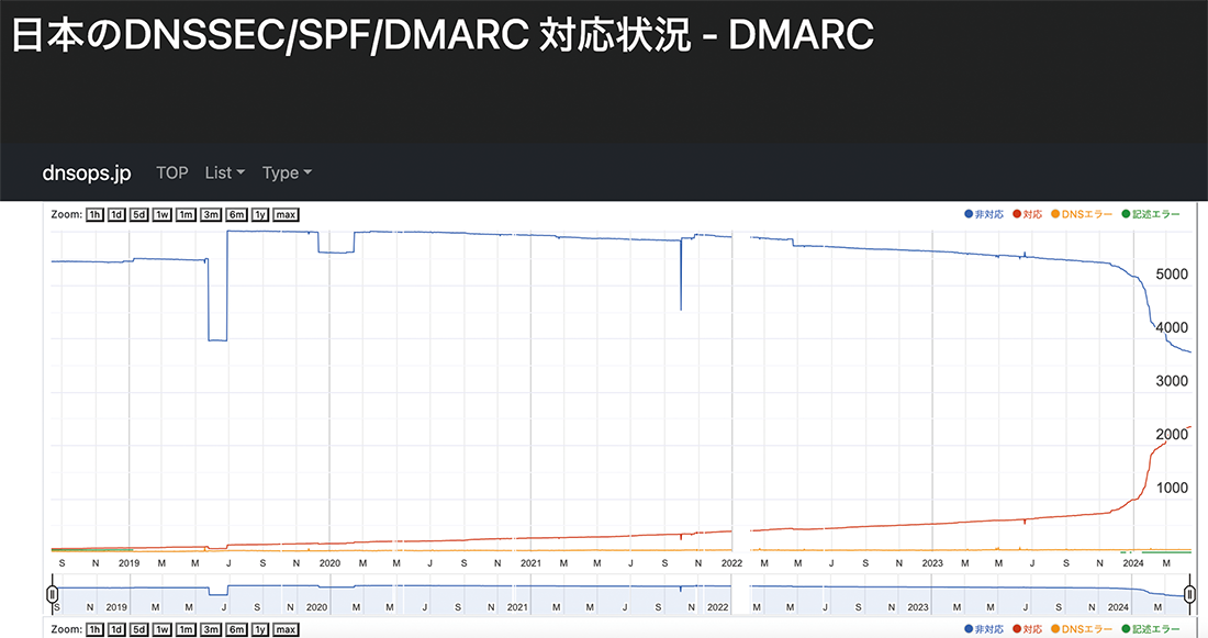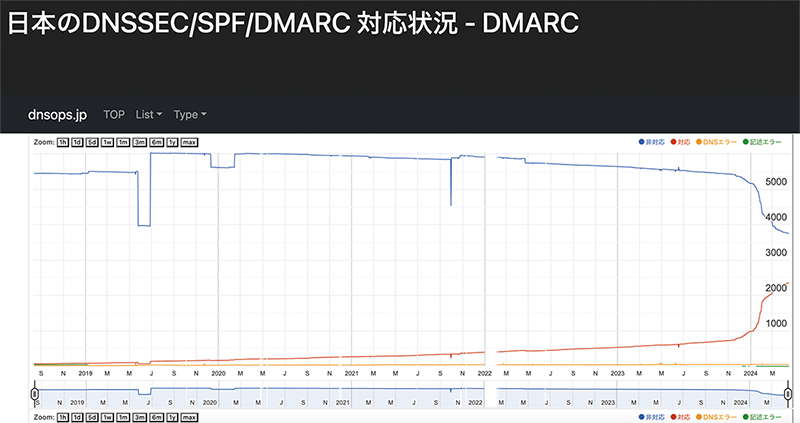 従前より、各クレジットカード会社などに対してはなりすましメールによる被害が増加しており、対策の必要性が叫ばれていましたが、この要請を機に、本格的な対策が始まったようです。図-5の金融業界ドメインのDMARC対応率の増加を見てもその様子が良く分かります(注8)。