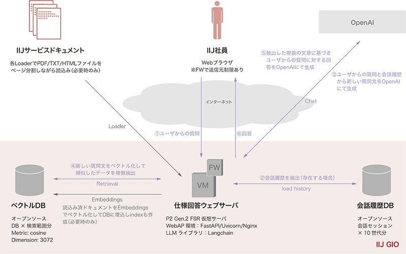 こうした状況を背景に、社内に点在するドキュメントデータを収集・加工し、一元的にデータベースとして集約すると共に、生成AIを活用して質問内容に即した具体的な回答を提供できることを目指して、社内RAG基盤の開発に着手しました。