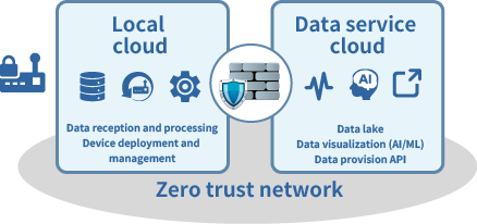 Local cloud services in conformance with local regulations in each country and data service platforms taking into consideration crossborder movement of data are available, as well as data collection, linking, and accumulation necessary for IoT and individually customized functionality necessary for data visualization and analysis.