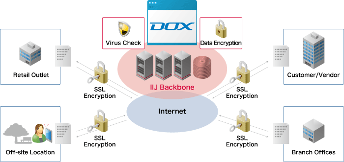 The IIJ Document Exchange Service (DOX) is an online storage easily accessible from a Web browser. This service is ideal to exchange and distribute files internally and with other companies.