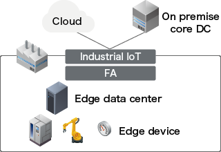 Applications such as smart factories, factory automation, and robotics may require low latency and large storage capacity. Therefore, they must be located on-premises at the plant. Edge data centers are suitable for harsh environments. Users can deploy edge data centers quickly at a lower cost by DX edge. In addition, it leads to TCO reduction. Operational costs can be reduced by remote monitoring and operation without onsite specialists.