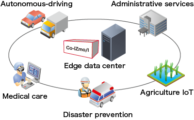 DX edge can be deployed as regional data centers (edge local data centers) for the IT infrastructure of smart cities. It starts on a small scale and can expand to meet demand.
