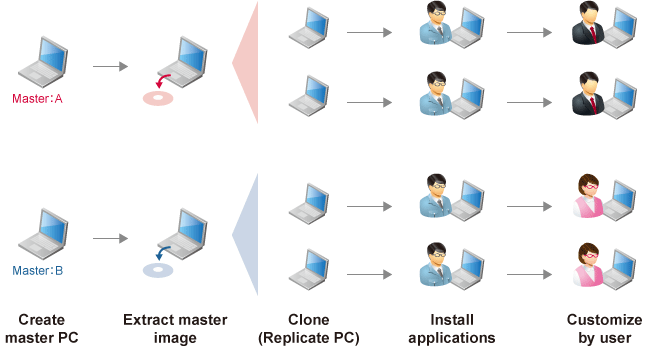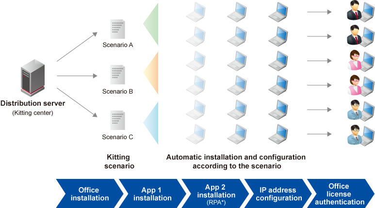 We provide a one-stop service from PC procurement to kitting, master image deployment, and device delivery to users.