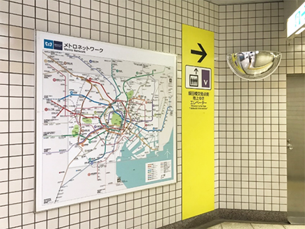 This photo shows the entrance to the "Elevator to Ground Iidabashi Intersection" at the transfer gate between the Tokyo Metro and the Toei Subway.