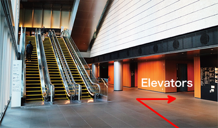 - (2)On the 1st floor of the office building, take the elevator on the right side of the escalator to the 2nd floor and head to IIJ's reception area.