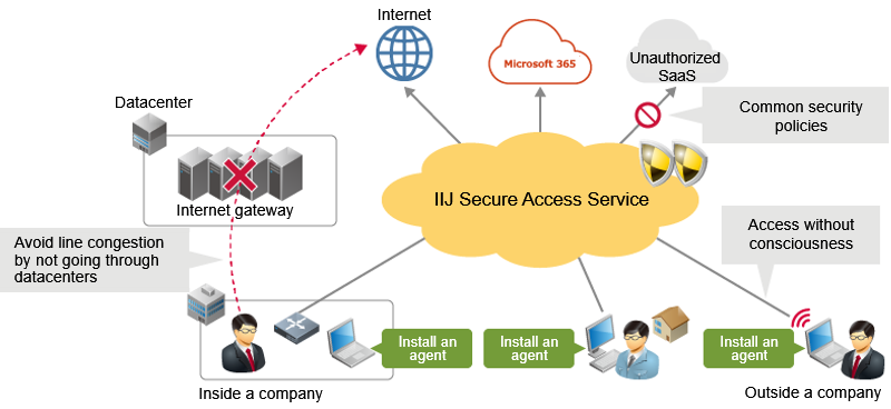 TOKYO - August 30, 2022 - Internet Initiative Japan Inc. (TSE Prime: 3774), one of Japan's leading Internet access and comprehensive network solutions providers, today announced to begin providing its newly developed SASE(*1) service, "IIJ Secure Access Service" (hereinafter, "the Service") starting September 1, 2022. It will make available securely, simply, and at low cost a SASE service, essential in today’s world for realizing a safe remote work environment. Bringing together all the security and network functions for achieving a work style unconstrained by place, it will be provided at the affordable price of JPY990 /month per user(*2) (minimum 50 users), making it an ideal service for mid-tier enterprises (MTEs) as well as for small and medium-sized enterprises (SMEs).