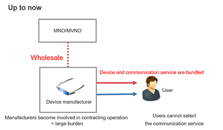 Up to now, to equip a device with cellular communication functionality, the device manufacturer would contract with a specific mobile network operator in advance, and sell the device with the SIM inserted in a slot on a device circuit board. For this purpose, the device manufacturers themselves typically became an MVNO or a sales partner, which imposed a burden on the manufacturer. This conventional distribution arrangement has remained in place even when the SIM has changed from a physical one to an eSIM for IoT devices.