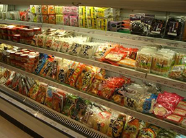 外食産業同様、日本の食品メーカーも数多く進出し、現地向けの商品を提供しています。スーパーの棚を見ると、味の素、グリコ、ポッカ、紀文、明治、味覚糖、ブルボン、ネスレ(本来はスイスの企業であるが、日本ネスレ製と思われる製品も多々見られる)といった様々なメーカーの商品が所狭しと並んでいます。その中でも、日本向けの商品をそのまま輸入、提供している企業もあります。これは物流、調理も含め、冷凍・冷蔵技術や物流がタイでも確実に整ってきたためと思われます。
