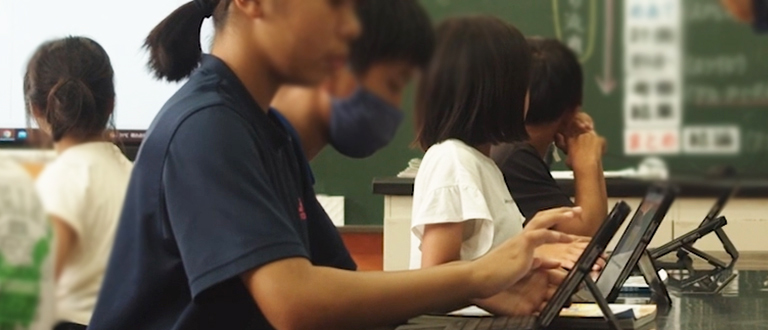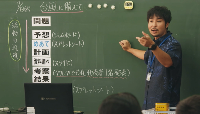 前三盛校長:地域特有といえば、石垣市ではまだ自宅にネット回線が引かれていない子もいる。そういう子たちが家庭でみんなと同じようにタブレットを使って宿題ができるよう、オフラインでも利用が可能な設定を組むなど、様々な工夫を取り入れました。
