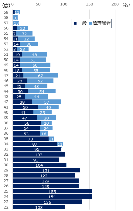 IIJ(単体)年齢別 管理職者数(2025年4月現在)