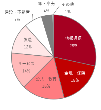当社グループのお客様は、優良法人・官公庁等を中心に約16,000社にのぼります。インターネット接続・セキュリティ関連サービス等のネットワークサービスは全ての業界で満遍なく利用されているもので、特定業界への偏りはなく、各業界の多くのリーディング企業が当社グループのサービスを採用しております。また、特定のお客様への売上依存度は低く、各お客様向け売上高の全売上高に占める割合は最大でも3%以下(FY24 IIJ単体実績)となっております。