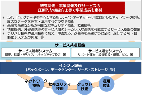 世の中の変化を捉え、その変化を先取りした高品質・高付加価値なITサービスを提供し続けることで、社会・個人によるネットワーク利用を支えていく。