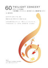 - 60 「ピアノ・トリオの調べ~佐久間聡一(ヴァイオリン)、玉川 克(チェロ)、桑生美千佳(ピアノ)」(10月17 日<金>)