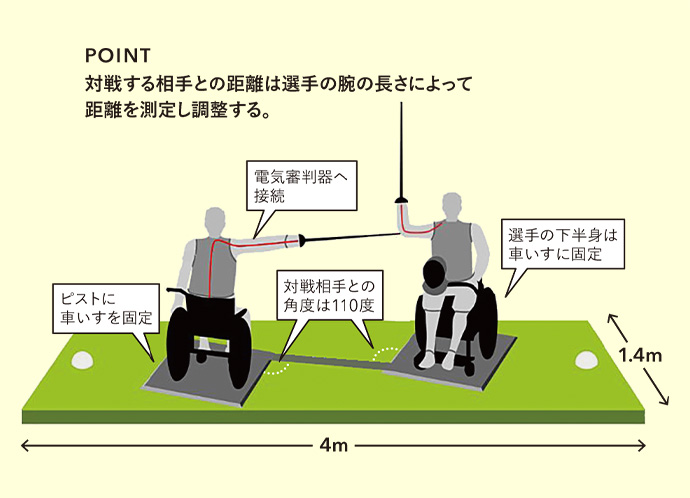 対人競技である車いすフェンシングは、いろいろなスタイルを持つ選手との対戦経験を積むことが重要です。
