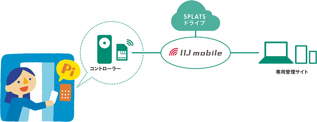 SPLATSパスコントローラーに内蔵されたIIJモバイルタイプIの通信ユニットが、解錠時の各種データを直接クラウドに連携させる。