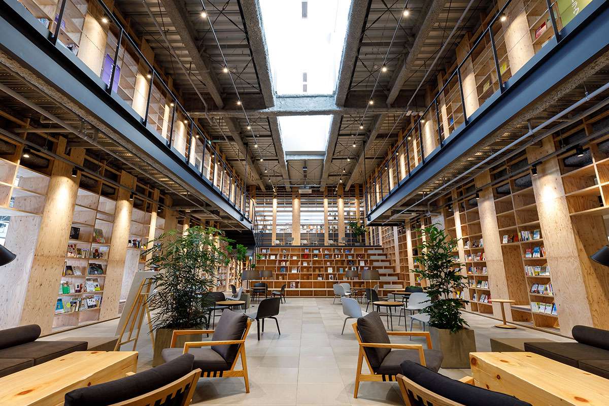 2Fには厳選された約3500冊が並ぶ図書館「BOOK LOUNGE」があり、誰でも自由に本を手に取ることができます。同じ階には、関連会社やベンチャー企業の社員が働くシェアオフィスと、社内外の人々の交流を促すカフェスペース「HUB SPACE」があります。多様な立場の人が混然一体となって過ごすことで、学びや気づき、イノベーションの促進が期待されます。今はコロナ禍の影響でオンライン開催が主体ですが、地域経済振興やDXなどに関するイベントも週に一回ほど実施されており、社内外の人でにぎわっています。