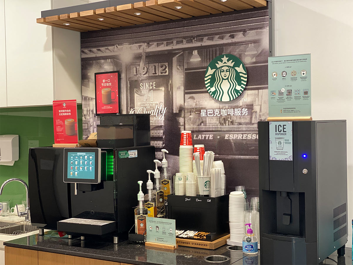 日本のコンビニのカフェコーナーに似ていて、自分でメニューを操作し、その時の気分に合ったコーヒーを選択すれば、目の前のマシンが淹れてくれる仕組みです。日頃、スターバックスで見慣れた、丁寧で陽気なバリスタこそ登場しませんが、スターバックス品質であることに変わりはありません。メニューも豊富で、写真のマシンはホット、アイス含め計17種類のドリンクを提供できます。使い勝手も良好で、味をお好みに調整する方法や操作手順がわかりやすく書かれています。肝心の価格設定は、上海市内のスターバックス店舗における小売価格の半分以下で、社員向け福利厚生の一環として会社補填できる仕組みもあります。
